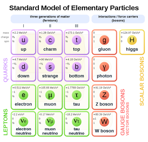 Seluruh alam semesta diatur oleh 17 partikel di atas. Ada dua tipe partikel, yakni fermion (12 macam), yang merupakan penyusun materi, dan boson (5 macam), yang memberi gaya. Proton dan neutron sebenarnya terdiri dari 3 partikel quark, sehingga kurang lebih, mayoritas materi yang kita lihat disusun oleh quark dan elektron.